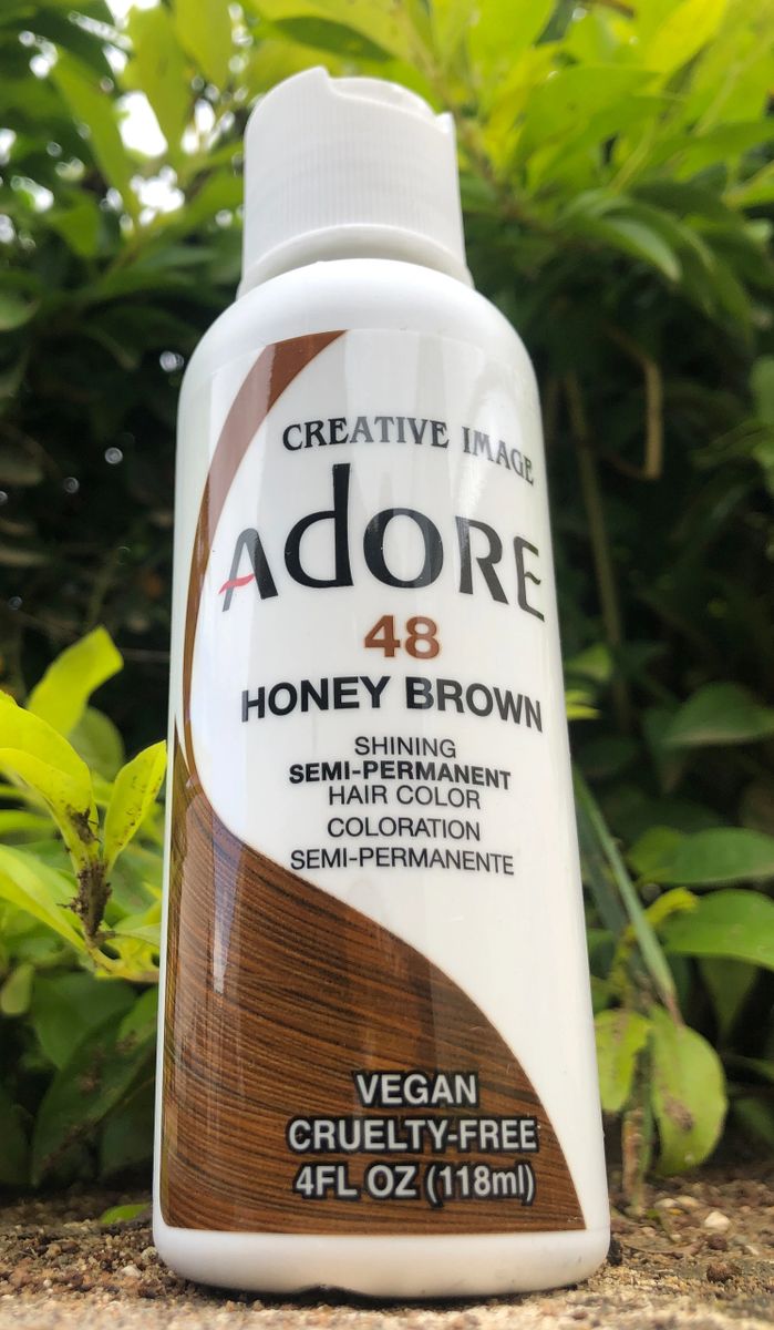 10 crystal clear will not lighten hair Adore shining semi permanent hair color (48 honey brown) average rating: Not required to use with peroxide. Revitalizes hair with a rich, indulgent color boost. Not intended for lightening hair color. It's also beautiful on a deeper, golden complexion—think jennifer lopez! The honey brown mix adds a hint of sunshine to brunette hair for a look that serves up serious shine and style. Sunrise orange ( a sunny bright orange shade with peach and golden undertones), cinnamon ( a natural yet rich medium cinnamon shade with golden copper undertones), honey brown (a medium natural honey shade), spiced amber ( a light copper shade with strong golden undertones), copper brown (a medium light. It's hard to find semi permanent dye in natural looking hair colors like copper and auburn. My hair is naturally a dark ash blonde, so when i use honey brown it blends nicely. Instead, the color coats the hair. Arrives by mon, aug 9. (5.0) stars out of 5 stars 1 ratings, based on 1 reviews.